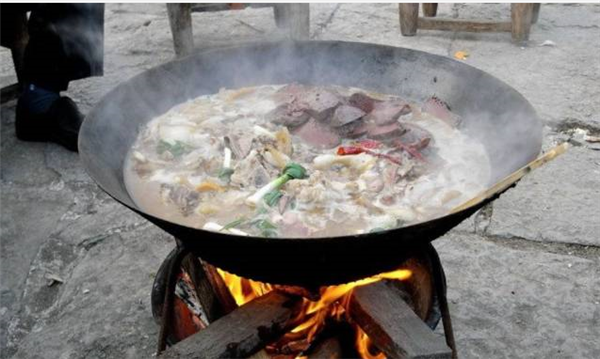“小雪杀猪,大雪宰羊。”许多地方每到小雪、大雪两个节气,村民们便开始杀猪宰羊准备年货。杀了猪,东家要做一锅猪烩菜,再配上米饭、小菜,略备薄酒,邀请四邻聚餐,寓意团结、和睦、万事兴旺。