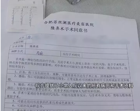 但这个时候,院方又提出,小常的隆鼻手术失败,是因为假体排异,而小常签订的协议书上写明,医院不用为此负责。