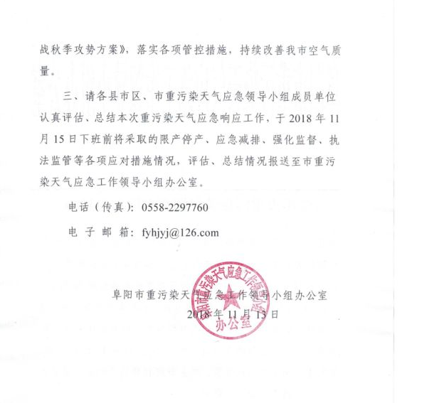 根据《安徽省解除重污染天气预警信息通报》(皖气领办〔2018〕6号)精神,经研判我市大气扩散条件转好,空气质量将逐步改善,满足重污染天气橙色预警解除条件。经市重污染天气应急