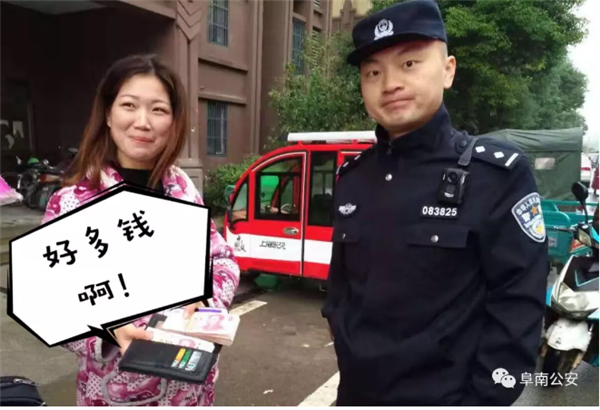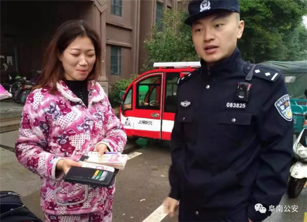 11月7日清晨6时左右,阜南县城北派出所接到群众报警:“警察同志,我捡到一个钱包,里面有好多现金,我不敢动你们快来看看啊。”民警接警后,迅速赶到报警人所在地,报警人是名女子姓刘,她手里拿着一个男士黑色